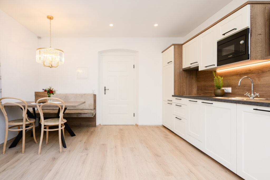 Die Ferienwohnung 1958 liegt auf erster Etage und erstreckt sich über 45 Quadratmeter mit Eingangsbereich. Sie bietet einen wunderschönen Ausblick über die Wagnerwiese zum türkisblau schimmernden Achensee. Die Ferienwohnung verfügt über ein idyllisches Schlafzimmer mit einem Eckbalkon nach Westen und großartiger Aussicht auf die rundum liegende Bergwelt. Das wunderschön proportionierte Badezimmer umfasst eine geräumige Dusche und einen Waschtisch. Die Toilette befindet sich separat. Der großzügige Wohnsalon umfasst eine elegante Villenküche mit gemütlichen Essbereich, sowie ein bequemes Sofabett zum kuscheln.